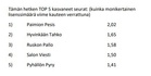 Paimion Pesis kärkipaikalla lisenssien määrissä Eteläisellä alueella