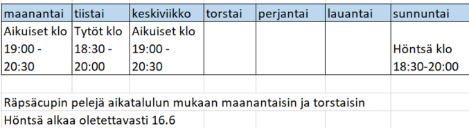 Lisätietoja aikuisten harrastesiksestä saat klikkaamalla vasemmalta Aikuisten harrastepesis.